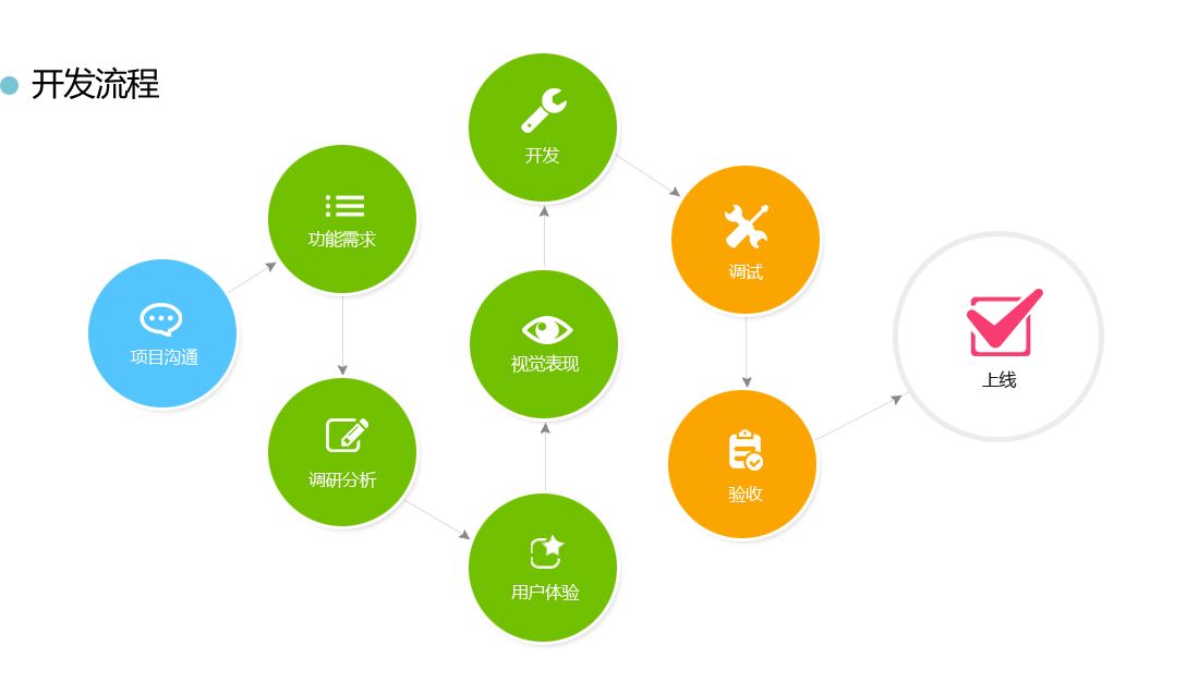 2159 任何app項目的設計開發團隊都需要以下這些人員:1.負責和用戶溝通的產品經理 2.設計頁面的ui設計師3.根據設計提供圖片切成網頁的前端開發 4.頁面做好后后端開發功能更 5.項目完成后的測試。。。。 怎樣去合理的安排每個成員的工作,確保項目如期的順利完成呢?這時候一個合理齊清晰的開發流程就非常重要了。