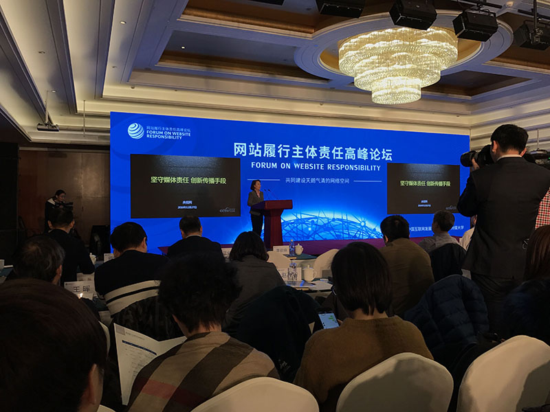 12月27日,由中國互聯網發展基金會和中國傳媒大學主辦的網站履行主體責任高峰論壇在京舉行。圖為論壇現場。