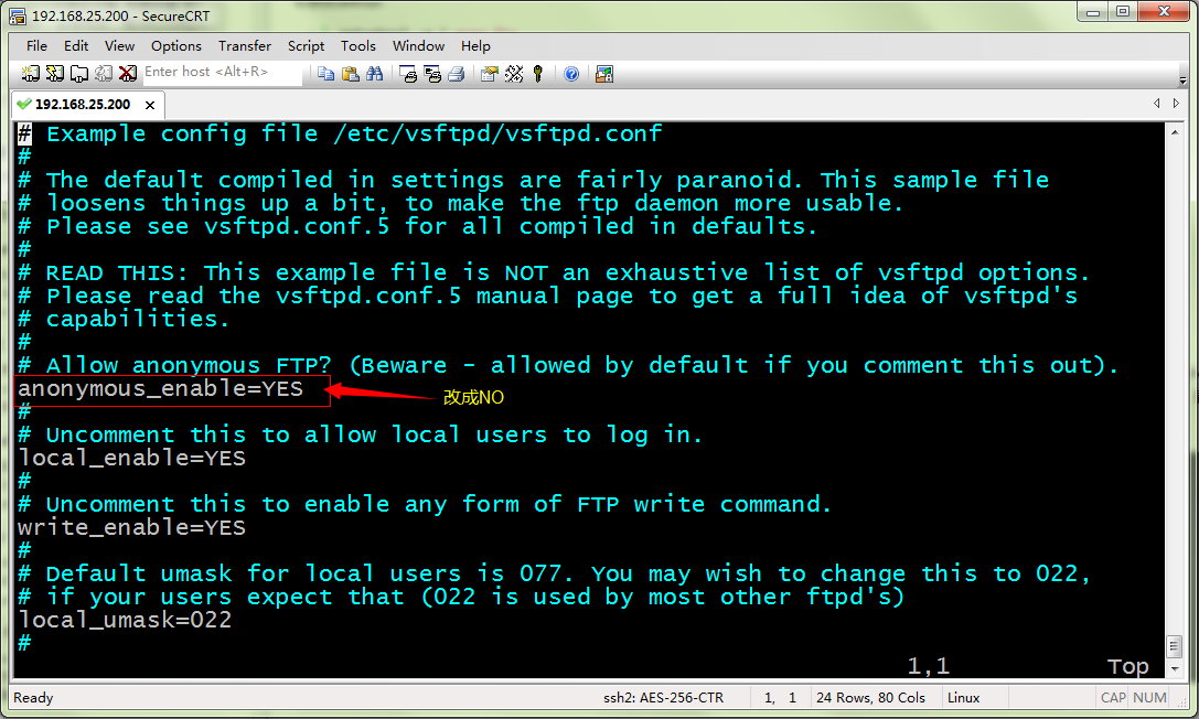 安裝完后,有/etc/vsftpd/vsftpd.conf 文件,是vsftp的配置文件。